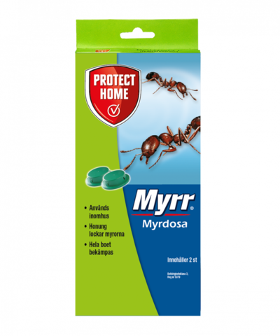 Om du har myrproblem ska du be Anticimex om Myrr gröna myrdosor. De fungerar bäst på myrorna i vårt område.