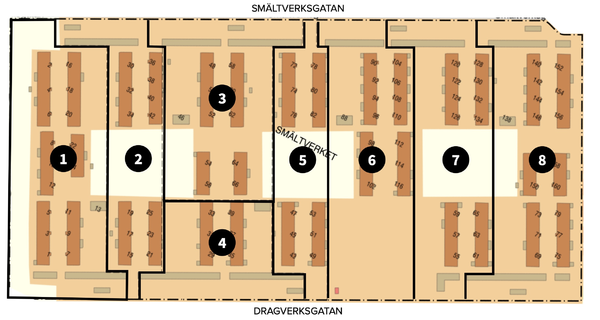 Vårt område består av åtta fastigheter med hus och mark, SMÄLTVERKET 1-8, enligt Lantmäteriet.