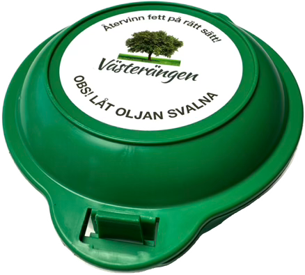 Med den här smarta tratten som gängas på flaskan är det enkelt att hälla bort fett. När flaskan är full sätter du på skruvkorken och lämnar flaskan i ett särskilt kärl i Miljöbodarna som transporteras till Återbruket. Smarta tratten kan hämtas gratis på Expeditionen.