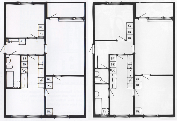 I 2-4 rumslägenheterna kan mellanväggen mellan vardagsrum och sovrum flyttas eller tas bort*. Det ger stora möjligheter till individuella lösningar. Samtliga lägenheter har tillgång till förråd i trapphusen. Klicka för att förstora bilderna.